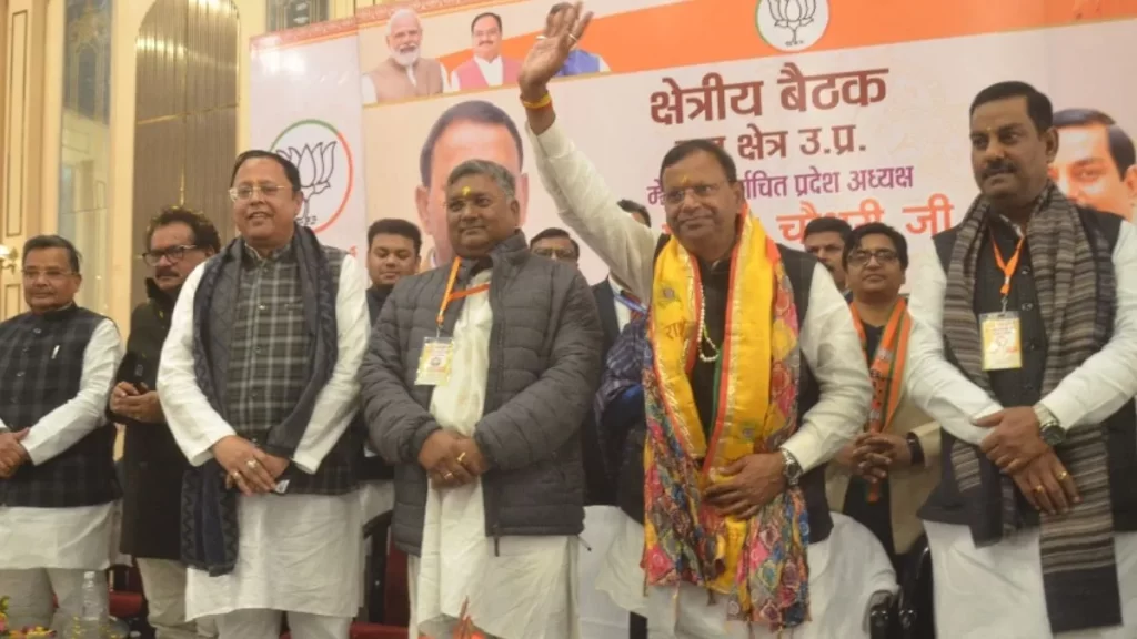 यूपी भाजपा अध्यक्ष पंकज चौधरी ने आगरा में कार्यकर्ताओं से 2027 में भारी बहुमत की शपथ दिलाई