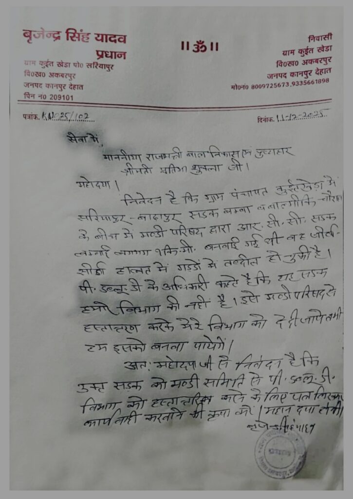 प्रधान बृजेन्द्र सिंह ने बताया कि उन्होंने इस सड़क के पुनर्निर्माण के लिए संबंधित विभाग और उच्चाधिकारियों को कई बार लिखित प्रार्थना पत्र दिए हैं।
