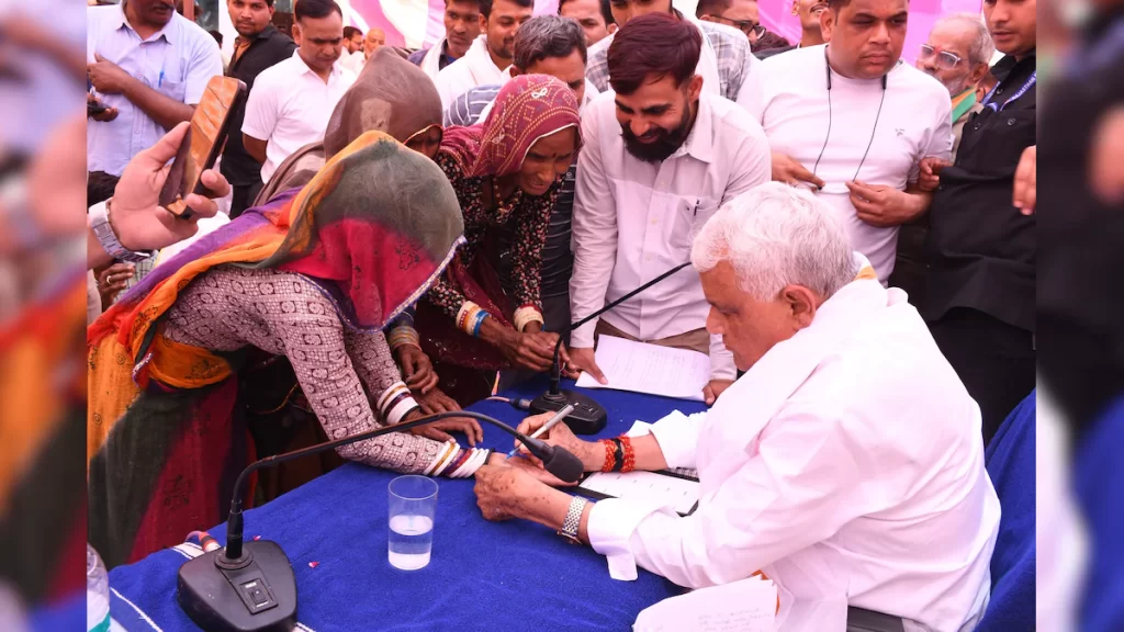 महिला की अपील: एक महिला ने अपनी समस्या बताते हुए मंत्री से पूछा, “सर, अगर समस्या का समाधान न हो तो आपसे दोबारा कैसे संपर्क करेंगे?” यह सुनकर मीणा ने तुरंत जेब से कलम निकाली और महिला का हाथ पकड़ लिया।