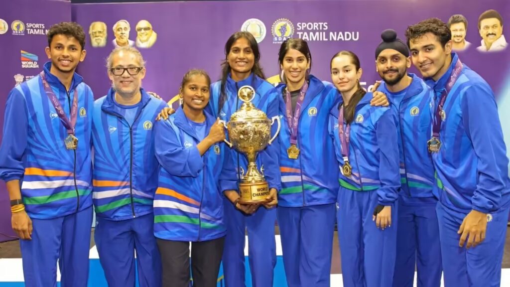 हांगकांग : चेन्नई के एक्सप्रेस एवेन्यू मॉल में 14 दिसंबर 2025 को खेले गए फाइनल में मेजबान भारत ने टॉप सीड हांगकांग चाइना को सीधे सेटों में 3-0 से हराकर SDAT स्क्वैश वर्ल्ड कप 2025 का खिताब अपने नाम किया। यह भारत का स्क्वैश वर्ल्ड कप में पहला गोल्ड मेडल है, जो भारतीय स्क्वैश के लिए ऐतिहासिक पल साबित हुआ।