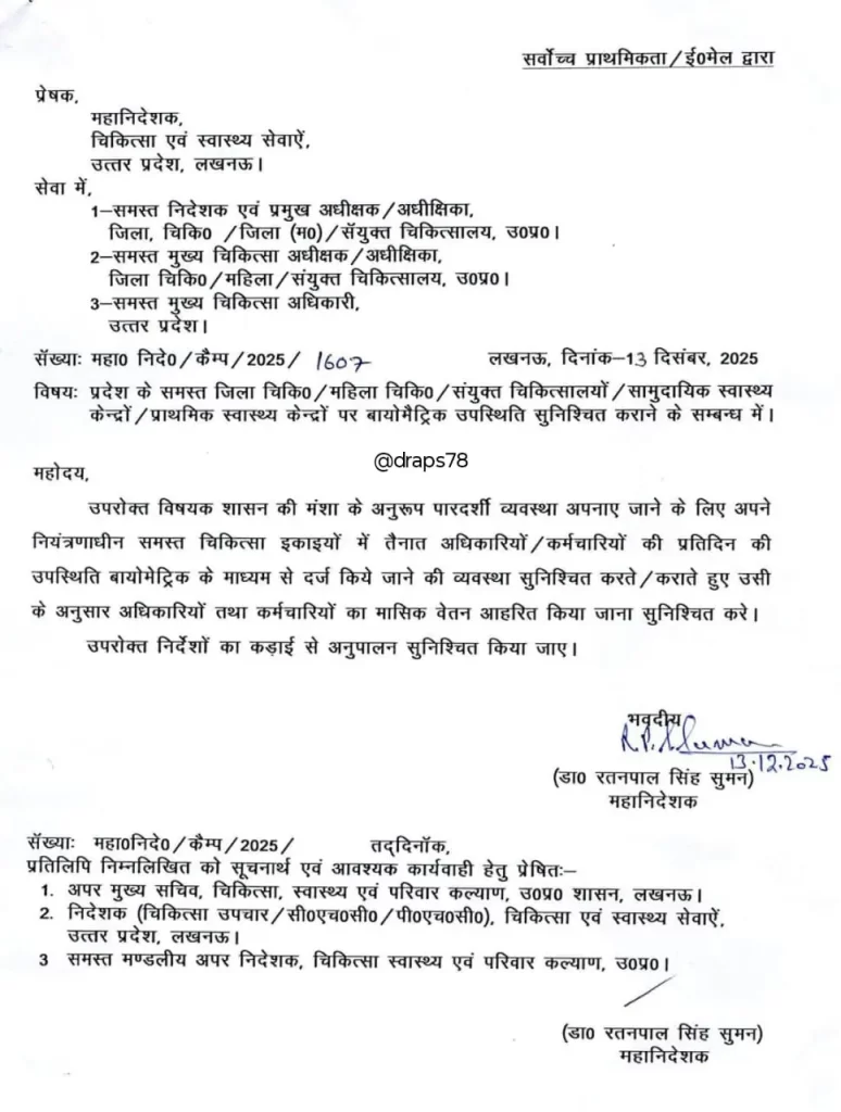प्रशासनिक अधिकारियों को जल्द से जल्द सभी जगहों पर बायोमेट्रिक मशीनें स्थापित करने और सिस्टम को सक्रिय करने के निर्देश दिए गए हैं। प्रवेश के समय उपस्थिति दर्ज करना सभी के लिए बाध्यकारी होगा। इस कदम से अस्पतालों में समयबद्ध कामकाज सुनिश्चित होगा और मरीजों को बेहतर सुविधा मिलेगी।